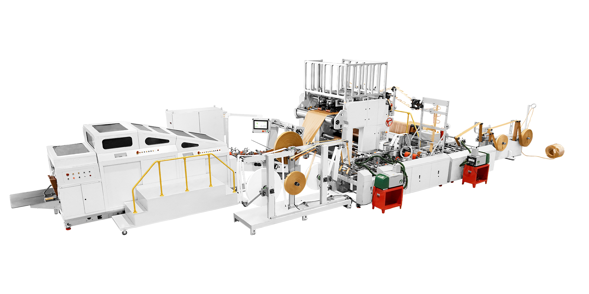 從功能上看,它具備強大的一體化生產能力。放料部分穩定高效,能夠快速完成紙卷的上料與準備工作;手挽制作環節,通過先進的工藝和設備,可精準制作出圓繩或扁繩手挽,且手挽的強度和美觀度都達到了行業前沿水平。在紙袋成型過程中,它能將紙張完美地折疊、粘合,形成堅固耐用的方底紙袋,底部的處理精細,確保紙袋在裝載物品時的穩定性。